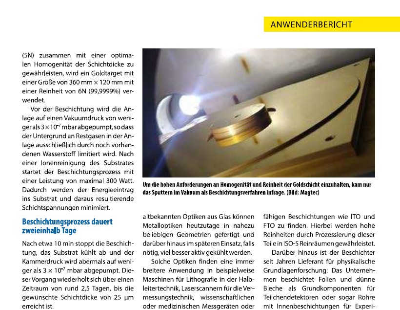 Early in 2025, the journal VIP Vakuum in Forschung und Praxis published a detailed user report on our sputter coatings for space applications.